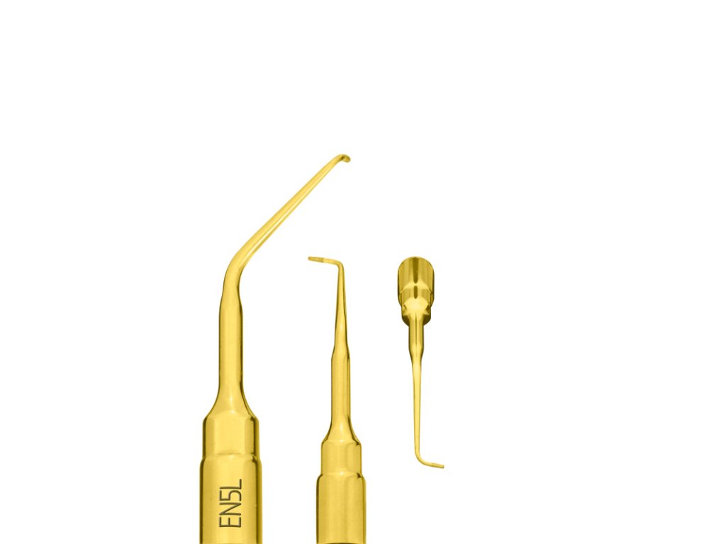 Koncovka EN5L je diamantem potažený piezoelektrický nástroj s levoúhlým zakončením, určený pro precizní apikální debridement při chirurgické endodoncii. Konstrukce umožňuje bezpečný a efektivní přístup z opačné strany než u pravoúhlé varianty (EN5R), což usnadňuje ošetření obtížně dostupných oblastí.