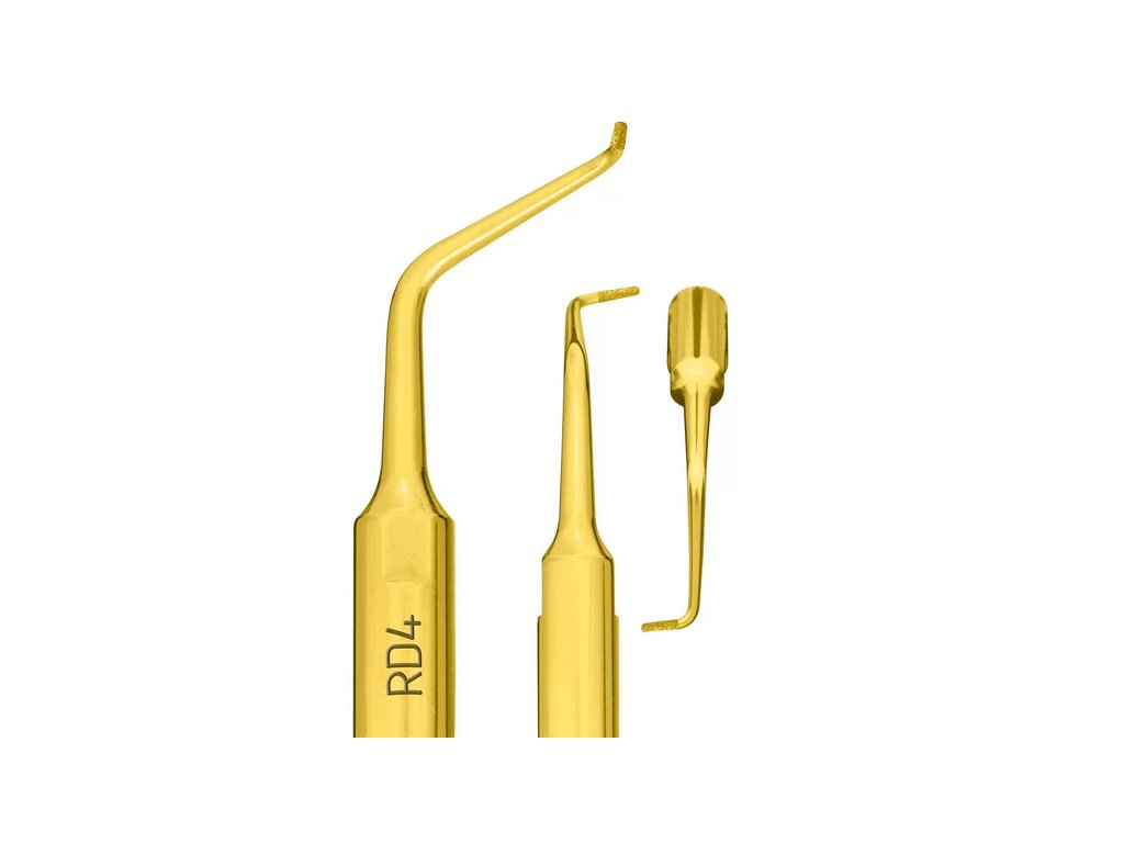 RD4 – koncovka pro endo retro mikrochirurgii s úhlovou hřídelí a 90° pravoúhlým pracovním hrotem s jemným diamantovým povlakem D30. Povrch chráněn povlakem z nitridu titanu, určena pro čištění kořenových kanálků v oblasti stoliček.