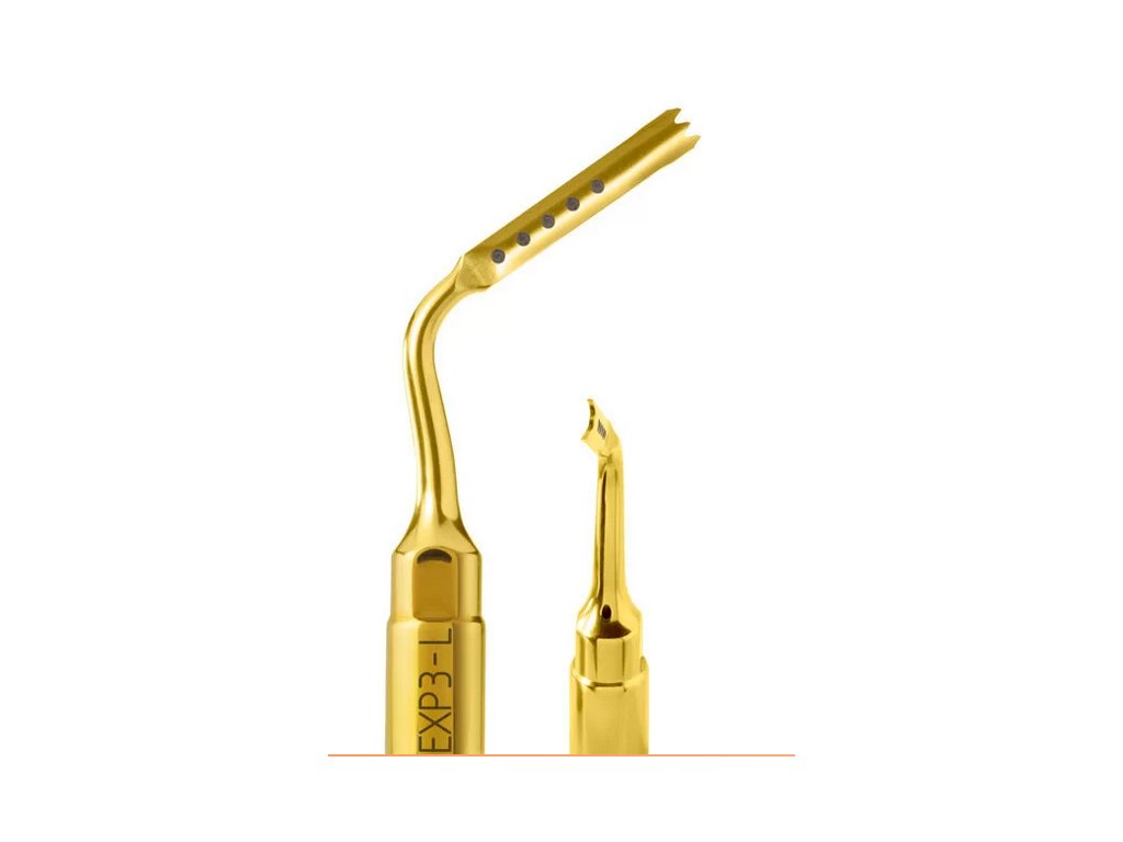 Koncovka EXP3-L je navržena pro šetrnou a efektivní peri-implantátovou osteotomii při explantaci dentálních implantátů. Díky ergonomickému levému úhlu umožňuje snadný přístup a precizní manipulaci i v obtížně dostupných oblastech.