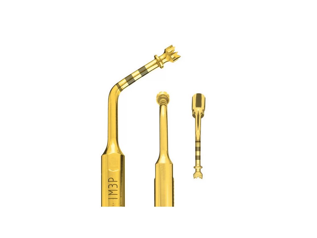 Vložka IM3P pro zvětšení nebo dokončení implantátního lože v zadní části horní čelisti. Průměr 3 mm, délka 13,5 mm, s povlakem z nitridu titanu, určena pro práci s dvojitou irigací k omezení přehřátí kosti.