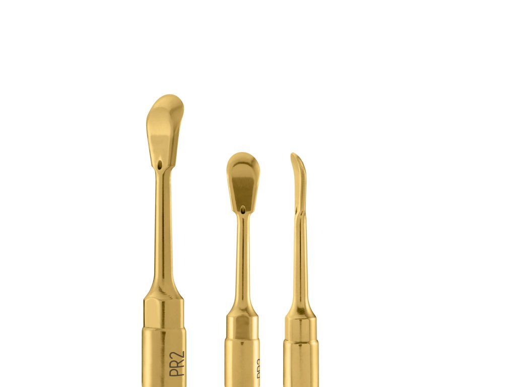 Koncovka PR2 je určena pro šetrnou a přesnou subperiostální preparaci při chirurgických zákrocích v orální oblasti. Díky šířce 5 mm je vhodná pro efektivní oddělení periostu od kosti s maximální kontrolou a minimálním traumatem.