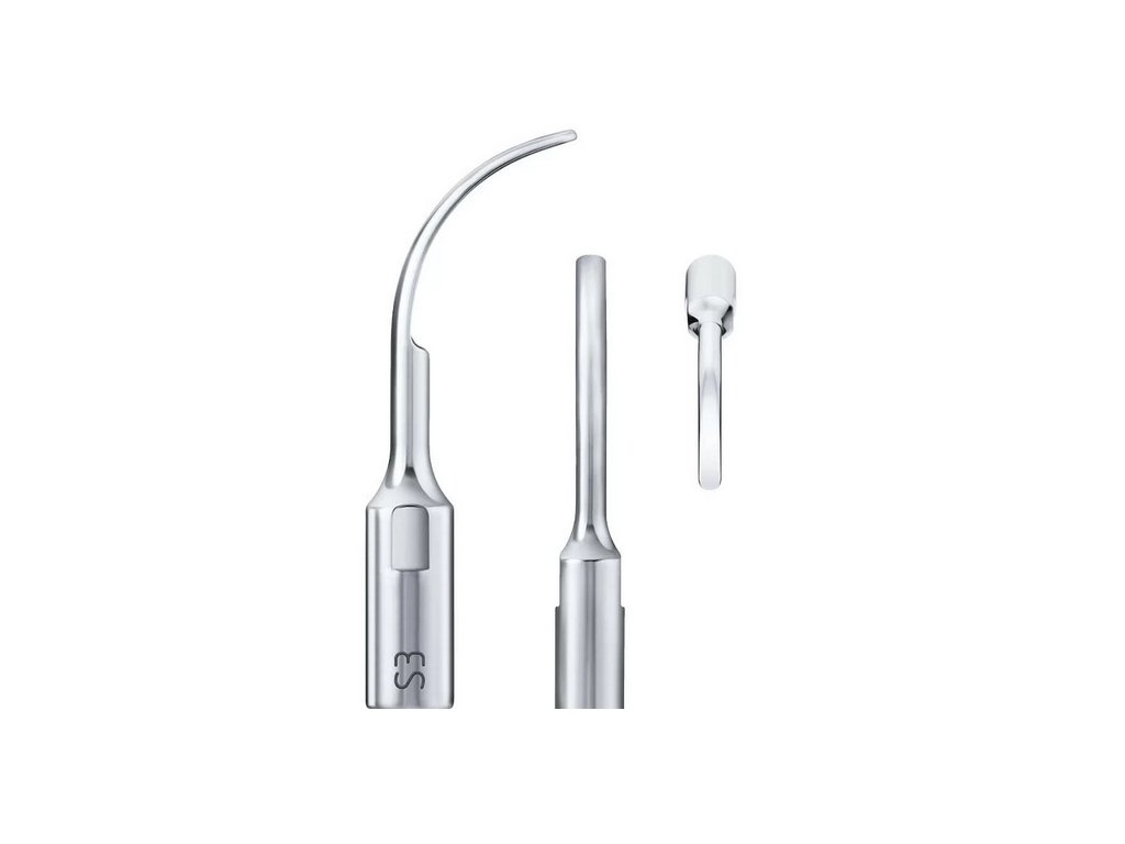 S3 – koncovka pro scaling se zploštělým, zaobleným hrotem, ideální pro efektivní odstranění subgingiválního zubního kamene na rozsáhlých plochách. Vyrobena z leštěné lékařské nerezové oceli pro maximální účinnost a odolnost.