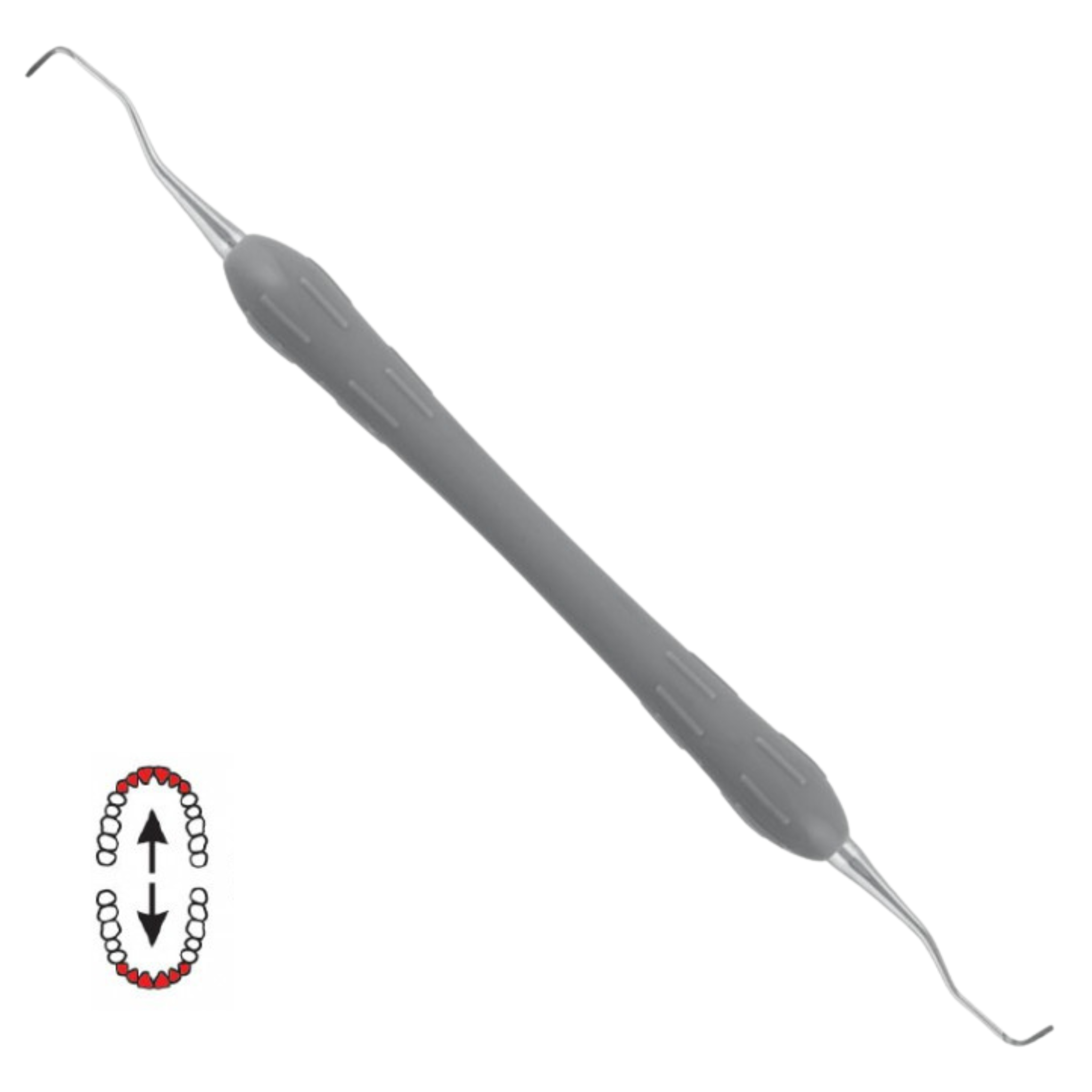 Standardní kyreta Gracey fig. 1/2 z řady Easy-Color je ideální pro šetrné a efektivní odstranění zubního kamene v oblasti předních zubů a malých mezizubních prostor. Díky ostrému a tenkému ostří umožňuje přesnou práci i v úzkých parodontálních chobotech.