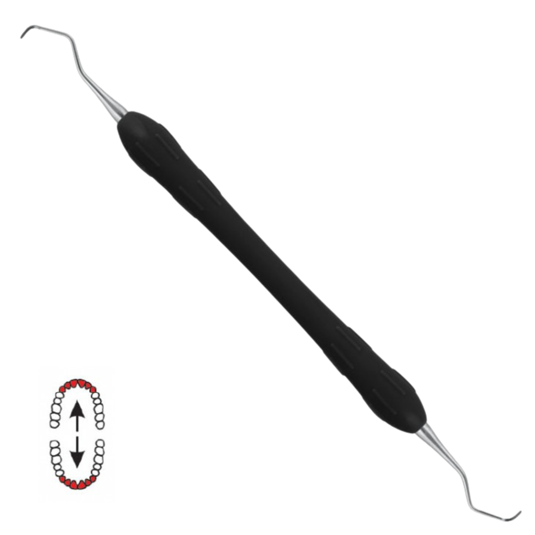 Použití: subgingivální kyretáž bukálních a lingválních ploch předních zubů