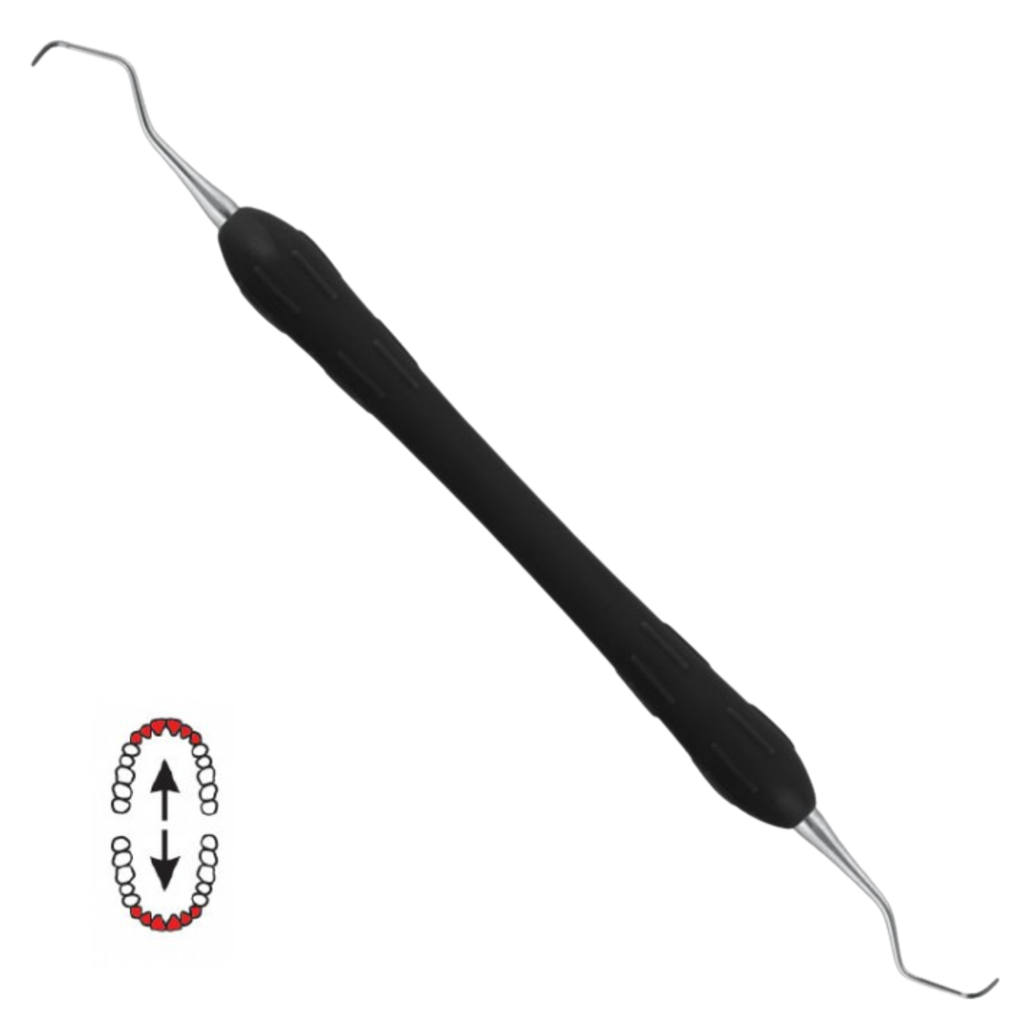 Anatomicky přizpůsobený tvar a pevná rukojeť s barevným označením umožňují snadnou orientaci při práci a vysokou míru kontroly. Tvrdá (zesílená) verze poskytuje větší odolnost při práci s odolnějšími usazeninami.
