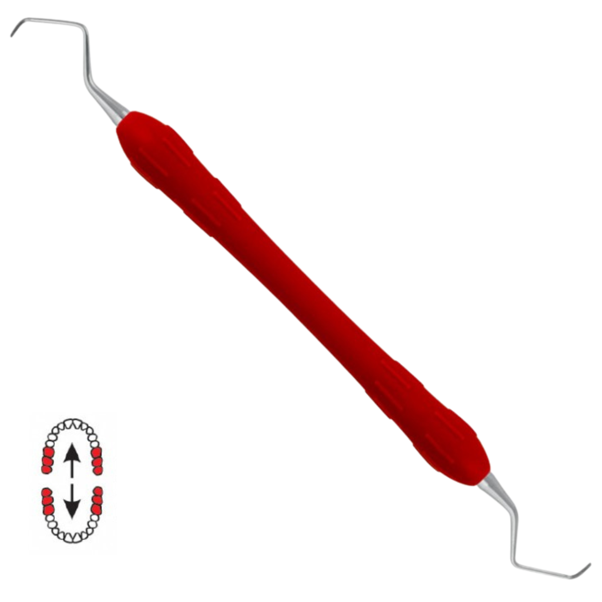 Kyreta Gracey Easy-Color tvrdá fig. 9/10 je navržena pro precizní odstranění zubního kamene z distálních ploch molárů. Díky pevné a tenké pracovní části je ideální pro šetrné ošetření i v náročných anatomických lokalitách.