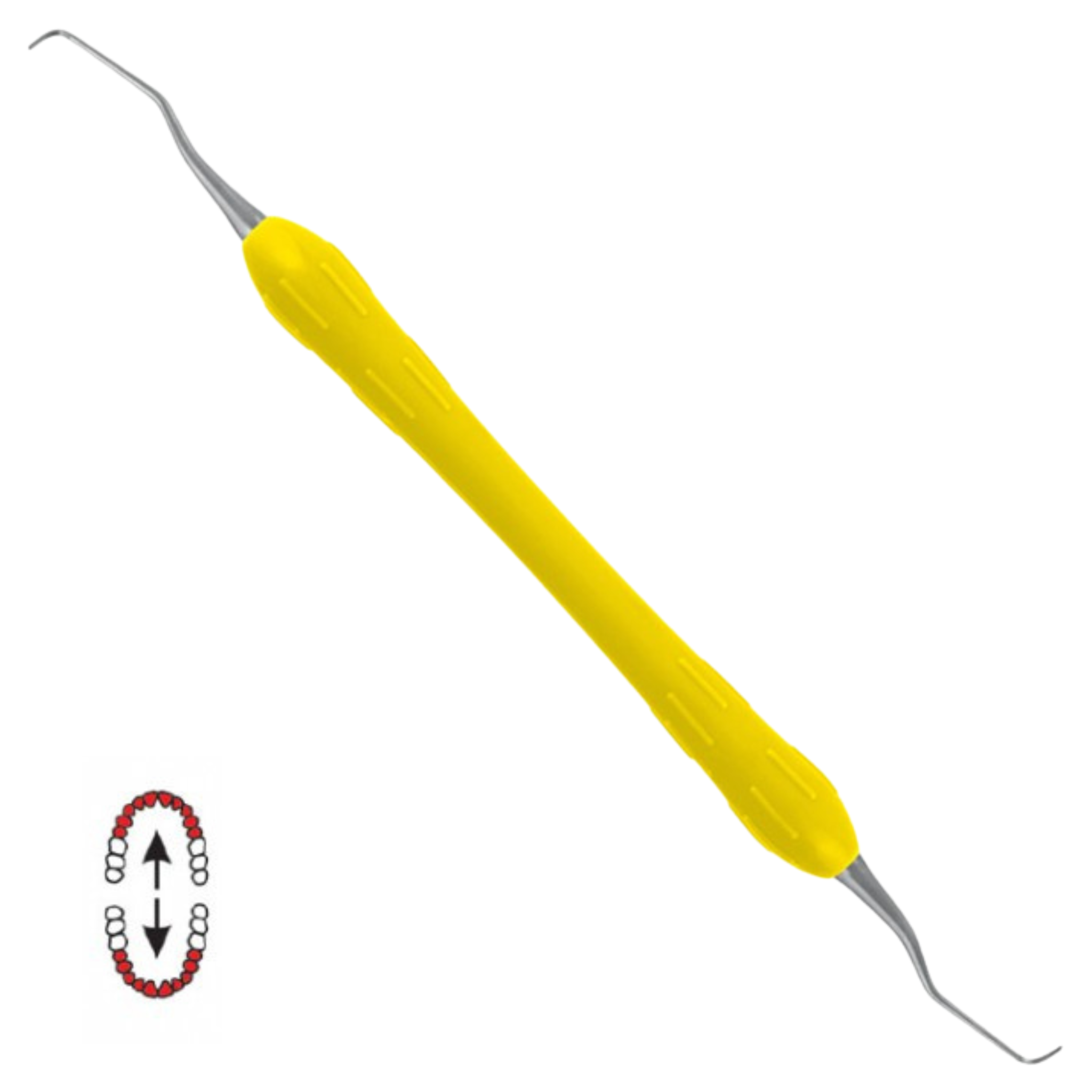 Ostrá a pevná pracovní část je vyrobena z kvalitní nerezové oceli a umožňuje efektivní odstraňování tvrdých usazenin i v úzkých parodontálních chobotech. Ergonomická rukojeť s barevným značením zajišťuje pohodlný úchop a rychlou orientaci během výkonu.