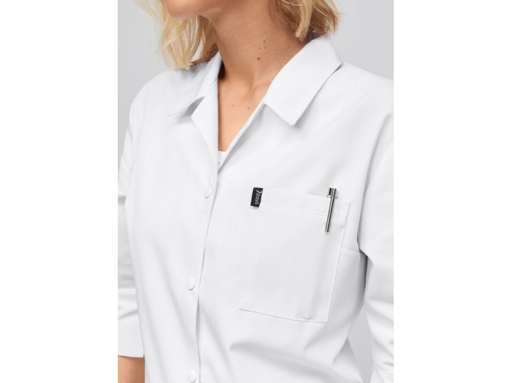 Tento dámský bílý plášť značky 7days je ideální pro zdravotnický personál, který hledá styl, pohodlí a praktické vlastnosti v pracovním oblečení. Plášť je vyroben z 100% bavlny, což zaručuje jeho příjemný materiál a odolnost proti praní a žehlení na vysoké teploty. Elegantní střih s délkou zadního dílu 82 cm je vhodný pro širokou škálu postav a navíc dodává profesionální vzhled.