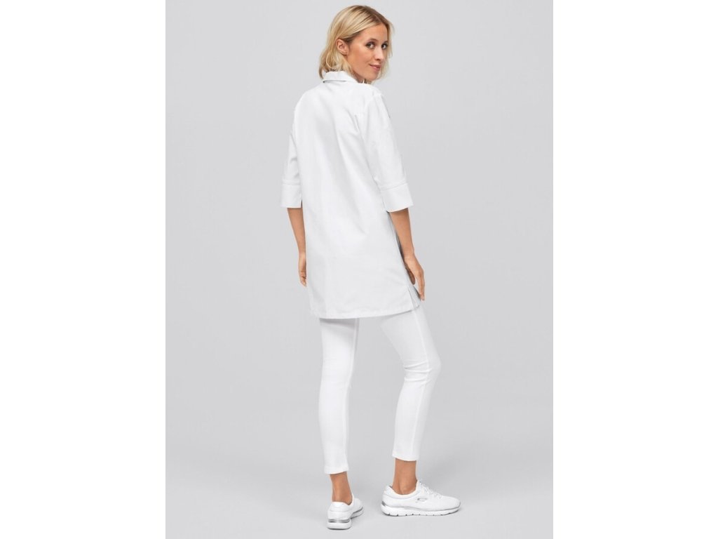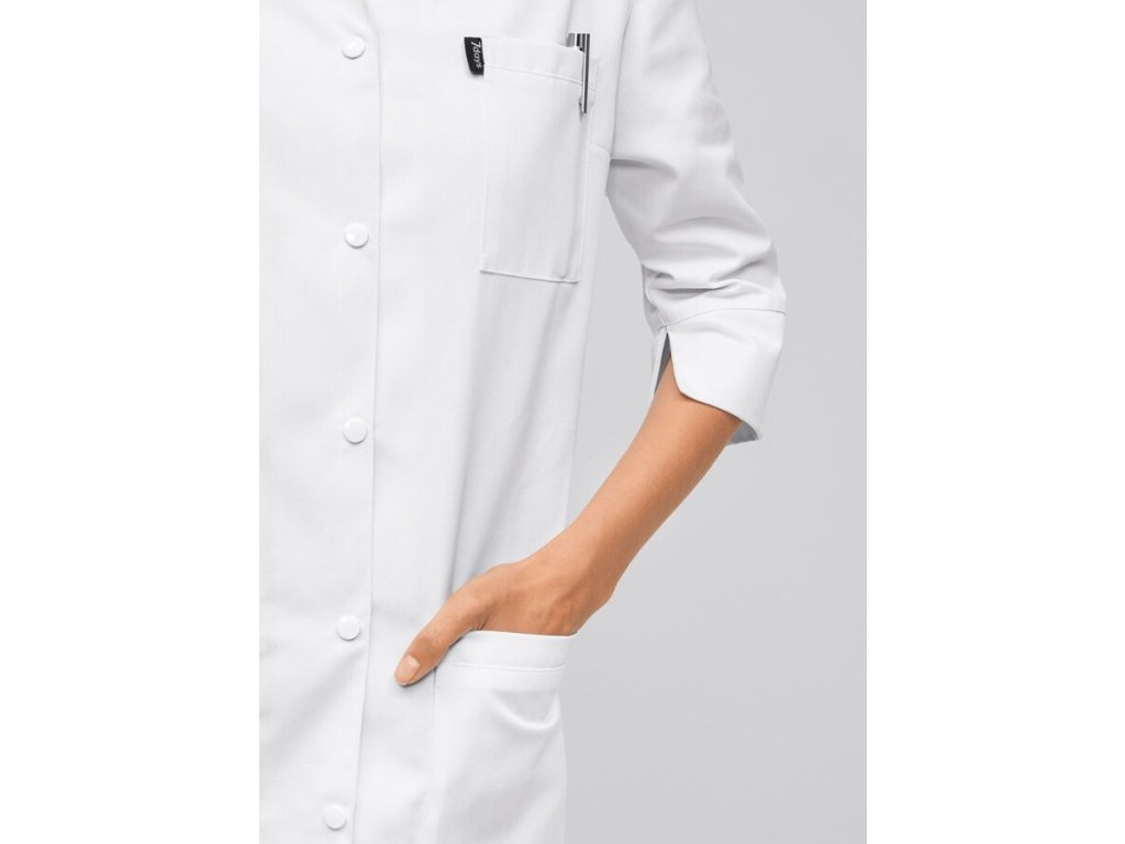 Dodání 4-5 pracovních dnů. Dámský bílý plášť s ¾ rukávem zaujme stylovým a kvalitním zpracováním. Plášť má ideální délku a zapínání na patentky. Ozdobou je klopový límec a elegantní střih. Pracovní plášť má 2 přední praktické kapsy a jednu kapsu náprsní. Díky 100% bavlně je plášť příjemný a pohodlný. Možnost praní v pračce až na 95°, je vhodný dokonce i do sušičky.