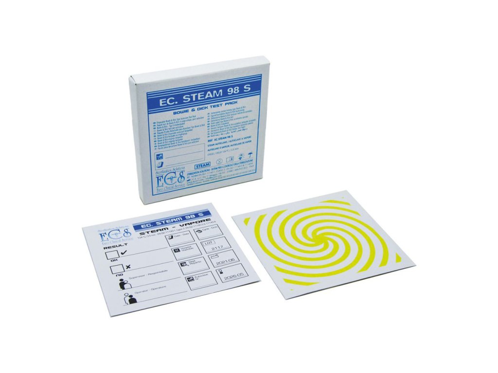 Jednorázový testovací balíček pro kontrolu průniku páry během sterilizace v autoklávu třídy B.