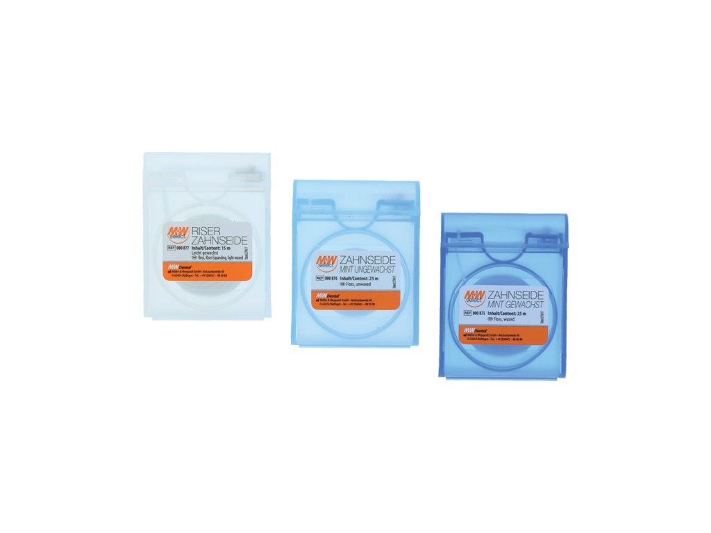 M+W Zubní vlákno 25m voskované Pevné zubní vlákno se zařízením pro snadné odřezávání