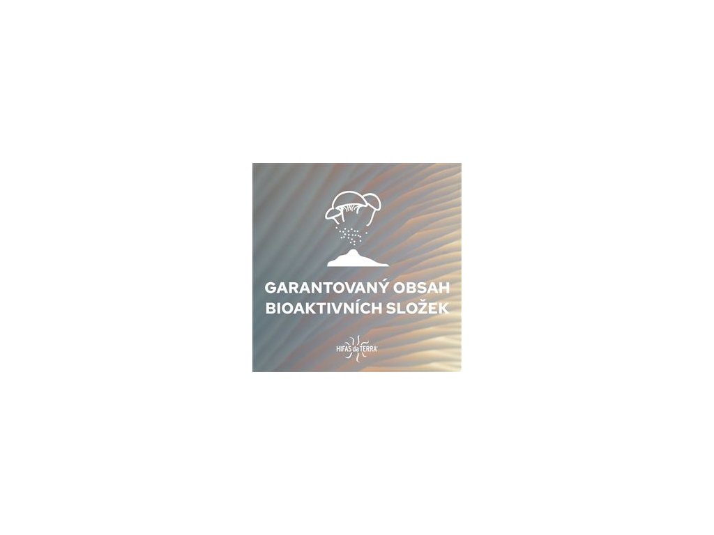 - 360° dohledatelnost - každou složku v produktech Hifas da Terra lze dohledat doslova ze všech stran, proto 360°. Přísně kontrolovaná produkce od pěstování, přes kultivační procesy až po uvedení na trh podléhají farmaceutickému standardu kvality GMP (Good Manufacturing Practice).