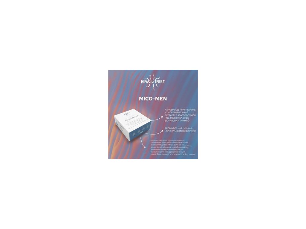Receptura Mico-Men je založena na symbióze silných bioaktivních extraktů z adaptogenních hub, které jsou upraveny procesem fermentace a následně převedeny do formátu nanoemulze, která zvyšuje biologickou dostupnost a vstřebávání až o 70 %.