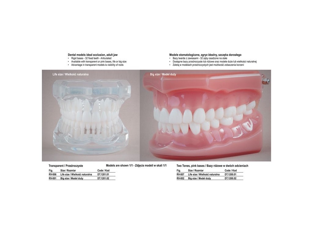 Real Series Stomatologický Model představuje realistický stomatologický model s transparentní konstrukcí, který přesně zobrazuje ideální okluzní vztahy zubů. Transparentní provedení umožňuje detailní sledování anatomie chrupu a kořenů, což je ideální pro vzdělávání, demonstrace pacientům nebo studium stomatologie a dentální hygieny.