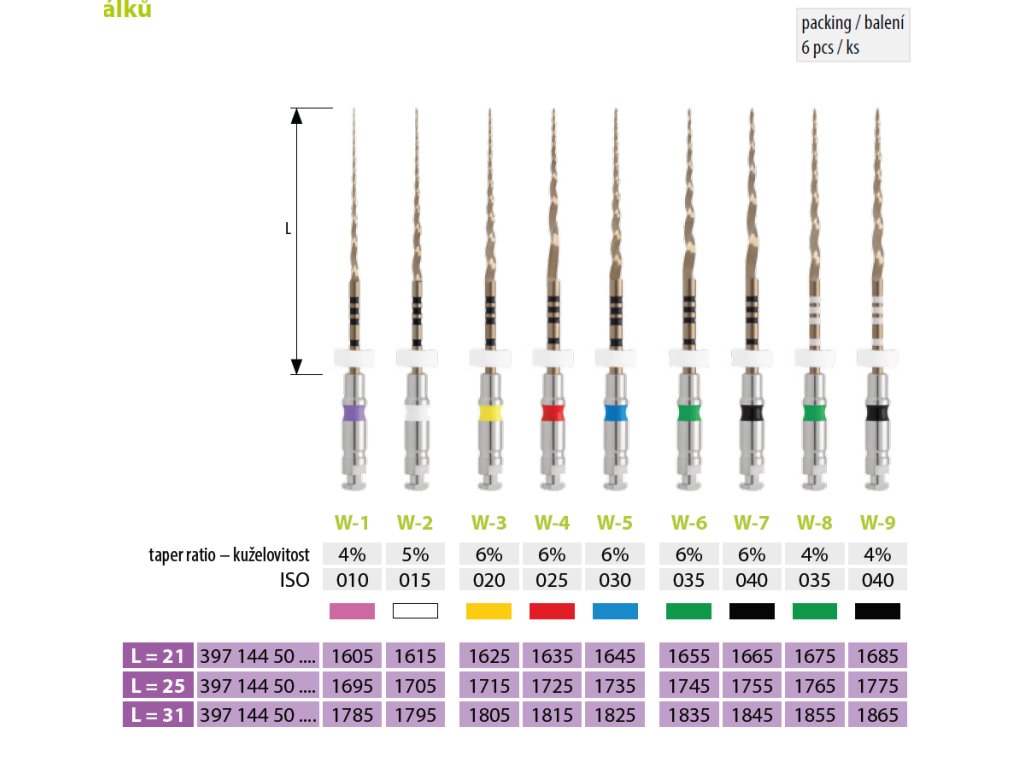 - Typ: NiTi rotační endodontické nástroje