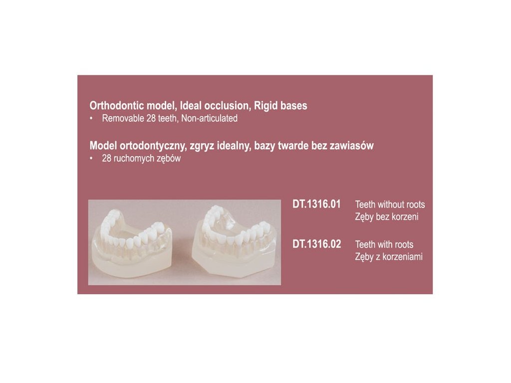 Ortodontický model Real Series třídy I s tvrdou bází a pohyblivými zuby s kořeny je ideální pro výuku, demonstrace a plánování ortodontické léčby.
