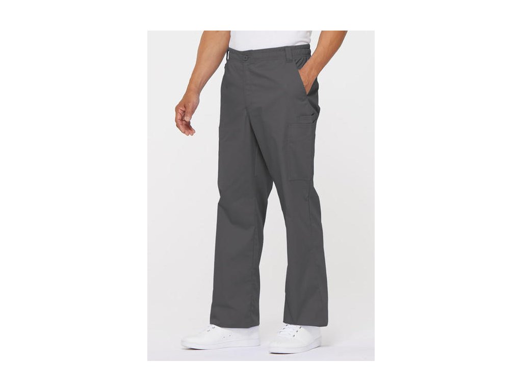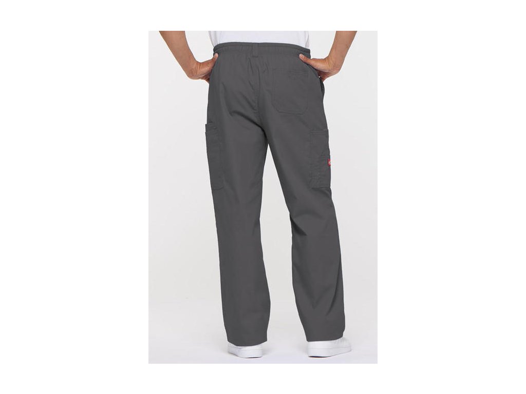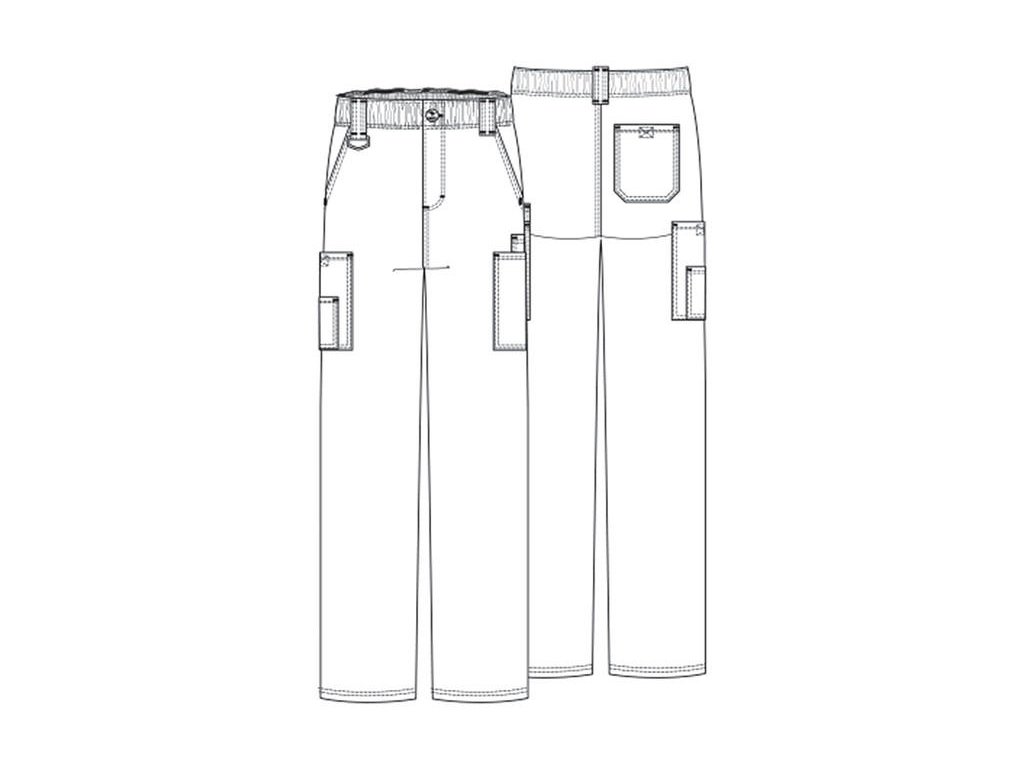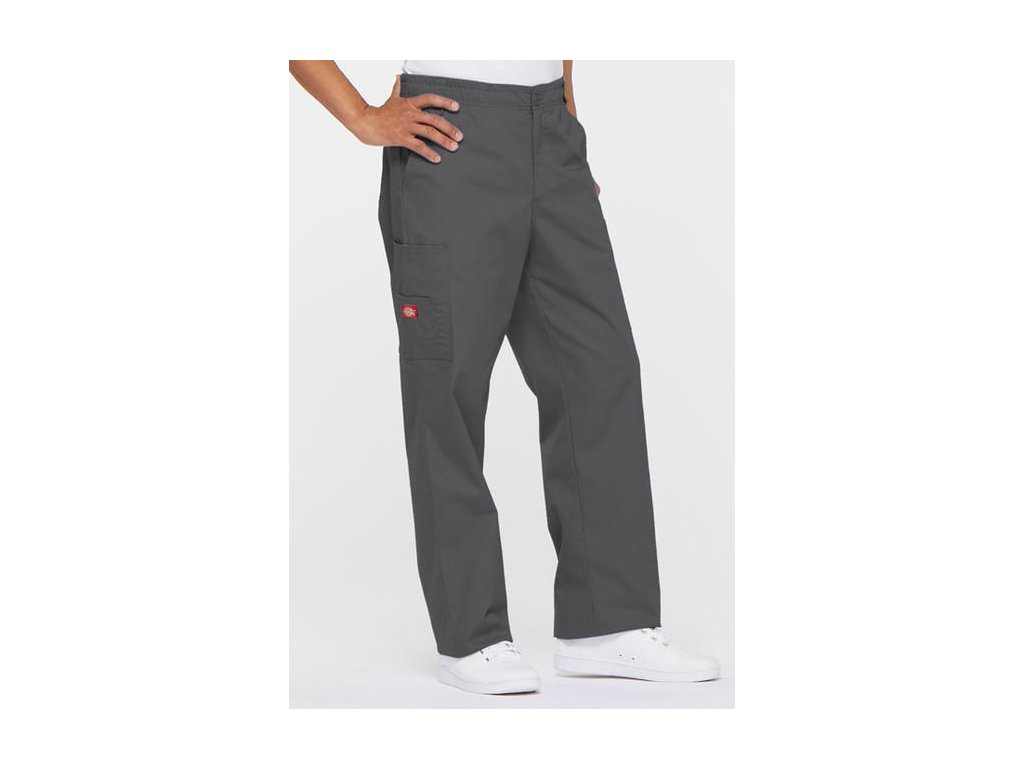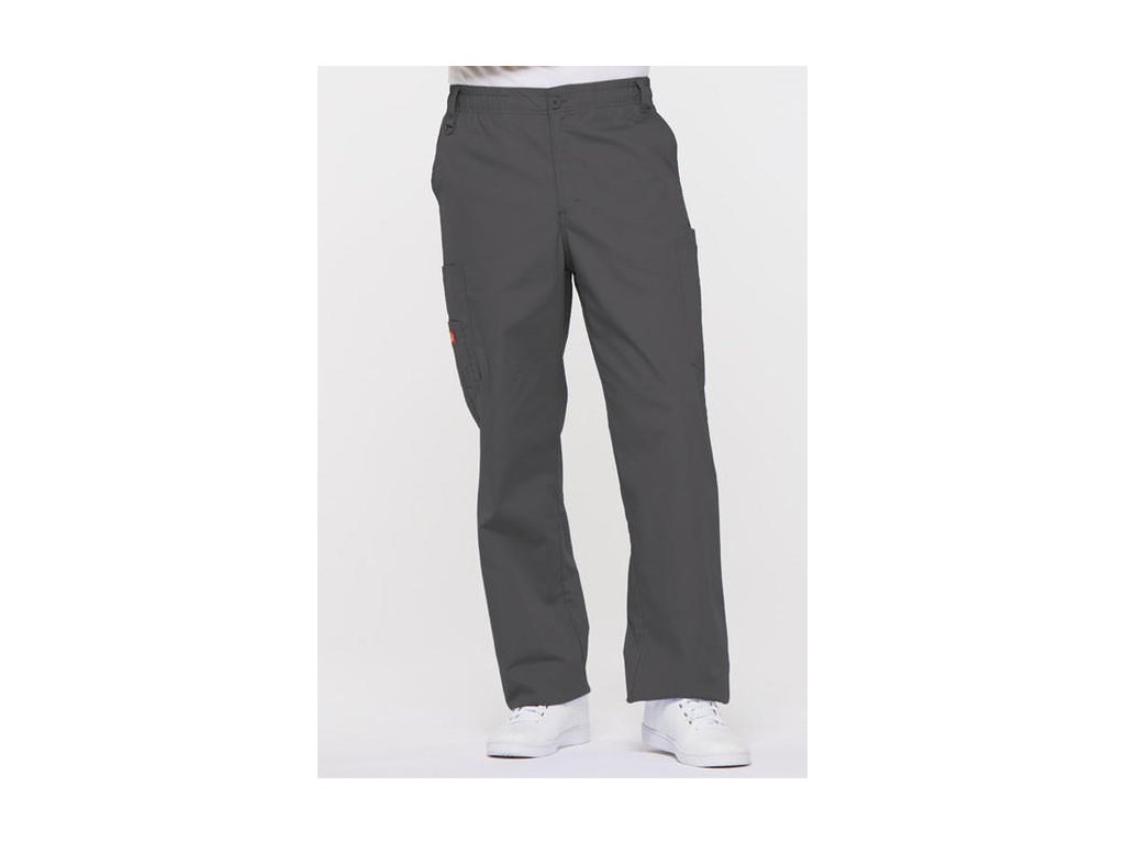 Dodání 4-5 pracovních dnů. Pohodlné pánské zdravotnické kalhoty se zapínáním na zip a knoflík, s elastickou gumou v pase a vnitřním šněrováním. Z vnitřní strany lemování s logem Dickies po celém obvodu. 2 přední kapsy, 2 cargo kapsy a 1 zadní kapsa. Dvojité prošití švů.
