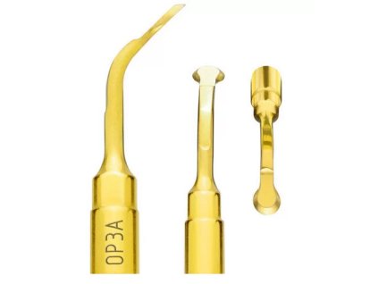 OP3A je hlavní osteoplastická vložka pro široké použití v parodontální chirurgii, vhodná k prodloužení korunky, odběru kostních čipů i k odstranění cyst a zánětlivé tkáně. Povrch je opatřen povlakem z nitridu titanu pro vyšší odolnost a efektivitu.