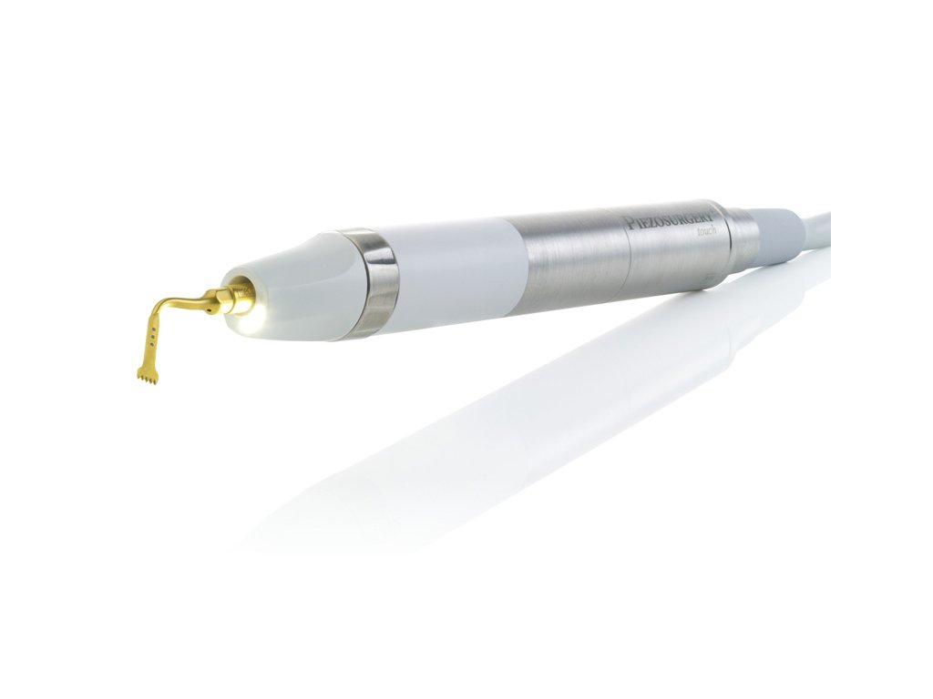 Piezosurgery® touch je ultrazvukový chirurgický přístroj s dotykovým ovládáním a LED násadcem, který nabízí mikrometrické a selektivní řezy kosti bez poškození měkkých tkání. Technologie Piezosurgery® zajišťuje maximální bezpečnost, přesnost a rychlé hojení při kostních operacích, jako jsou sinus lift, implantologie nebo parodontální chirurgie.