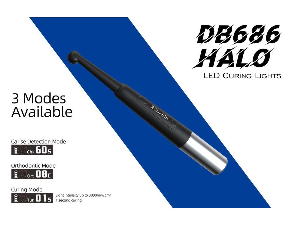 Lampa HALO kombinuje vytvrzování, detekci kazu a pět pracovních režimů v jednom zařízení – ideální pro profesionální stomatologické praxe vyžadující výkon, spolehlivost a ergonomii.