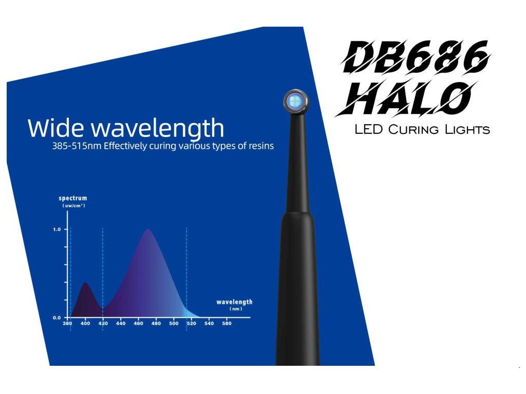 Polymerační lampa HALO 385–515 nm představuje spojení moderní technologie, výkonu a ergonomie. Nabízí širokospektrální LED pro vytvrzování všech typů světlem tuhnoucích kompozitů a zároveň umožňuje detekci zubního kazu.