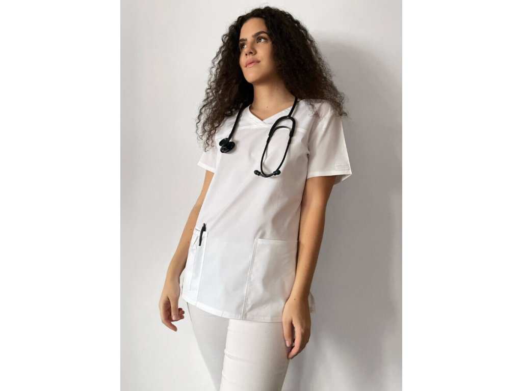 Halenu FIT můžete snadno kombinovat s různými variantami pracovních zdravotnických kalhot, které najdete v naší nabídce.