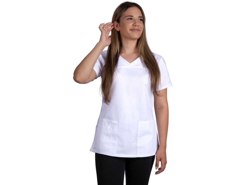Tato halena je vybavena velkými kapsami na přední části, které poskytují dostatek místa pro uložení drobných nástrojů nebo osobních věcí. Kromě toho se hodí pro různé profesní oblasti – lékařky, zdravotní sestry, veterinářky, zubařky, dentální hygienistky, laborantky, ale i pro pracovníky v oblasti wellness a masáže.