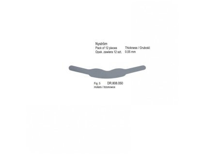 Matricové pásky Nyström fig. 5 jsou určeny pro klasickou laterální rekonstrukci zubů, zejména v postranním úseku. Jejich předem tvarovaný profil umožňuje vytvořit správnou kontaktní bodovou anatomii a zajistit hladký povrch výplně bez převisů.