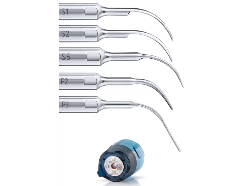 Obsahuje koncovky S1, S2, S5 pro supragingivální ošetření a P2, P3 pro precizní subgingivální čištění.