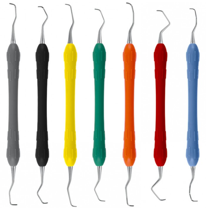 Sada Gracey kyret Easy-Color obsahuje 7 pečlivě vybraných nástrojů pro efektivní odstraňování zubního kamene pod dásní. Díky barevnému značení a ergonomickému designu je ideální volbou pro každodenní práci dentální hygienistky nebo zubního lékaře.