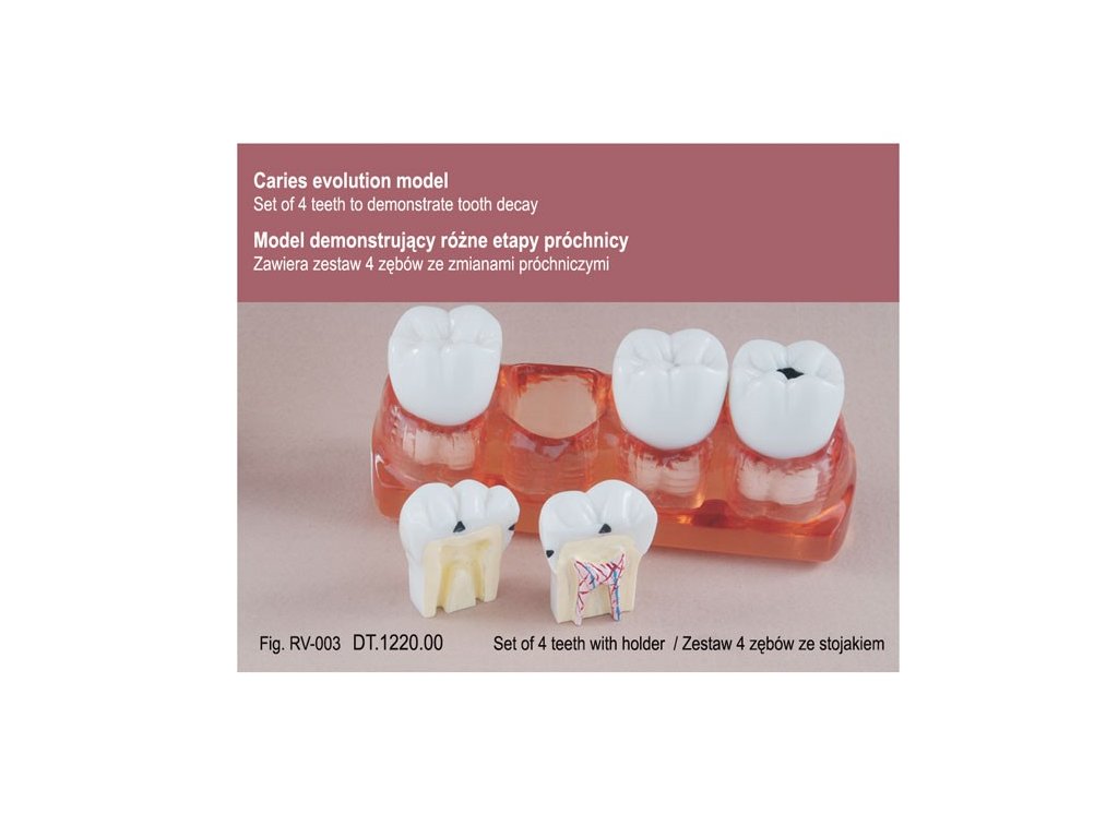 Sada modelů demonstrujících různé fáze zubního kazu Profesionální výuková sada pro demonstraci postupujícího zubního kazu