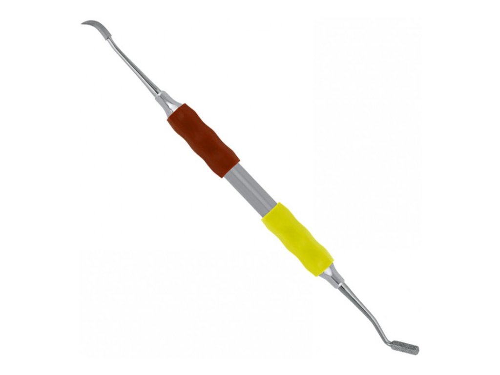 Soft-Line dopychovadlo a srpek je kombinovaný dentální nástroj určený pro nasazování kroužků a odstranění zubního kamene. Ergonomické držadlo zajišťuje pohodlné a přesné použití.