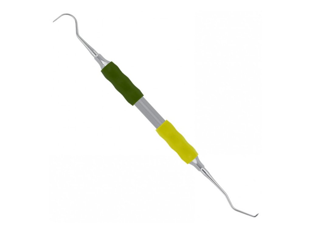 Soft-Line dvoustranná tvrdá sonda fig. 23/17 je nástroj pro přesné měření parodontálních kapes a diagnostiku stavu dásní. Barevné označení (olivová/žlutá) usnadňuje orientaci během vyšetření. Ergonomická rukojeť zajišťuje pohodlný úchop a je vhodná ke sterilizaci.