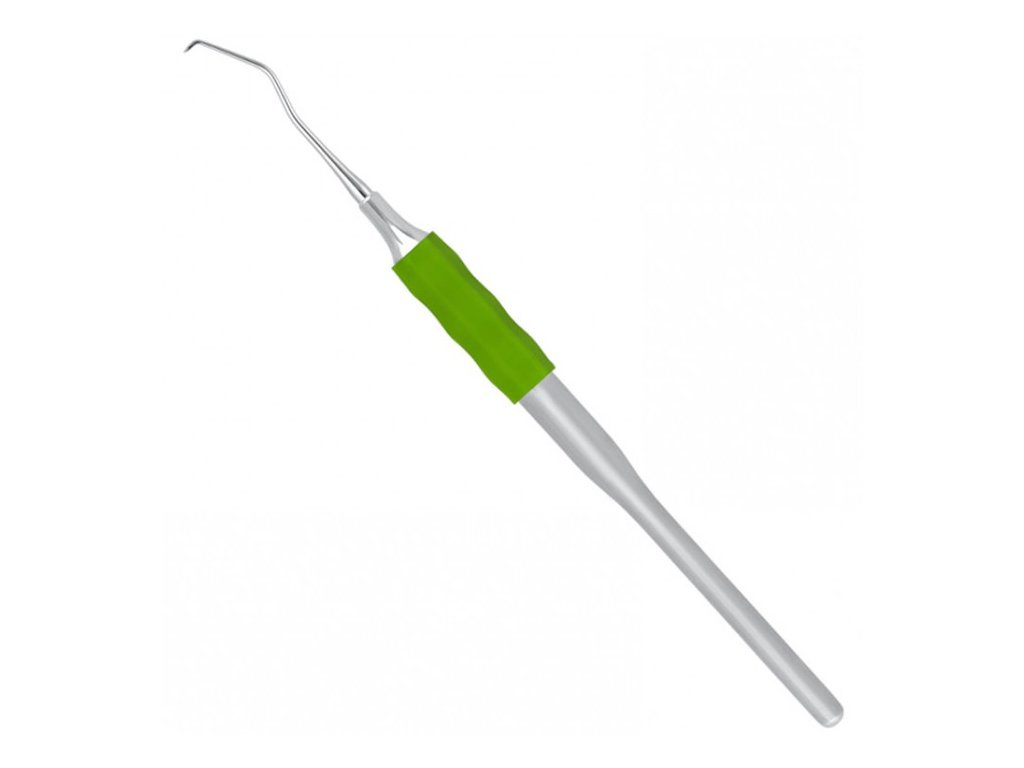 Soft-Line jednostranná tvrdá sonda fig. 17 je specializovaný dentální nástroj určený pro precizní měření parodontálních kapes a hodnocení zdraví dásní. Její olivové barevné označení umožňuje rychlou orientaci mezi nástroji, což ocení zejména stomatologové a dentální hygienisté během každodenní praxe.