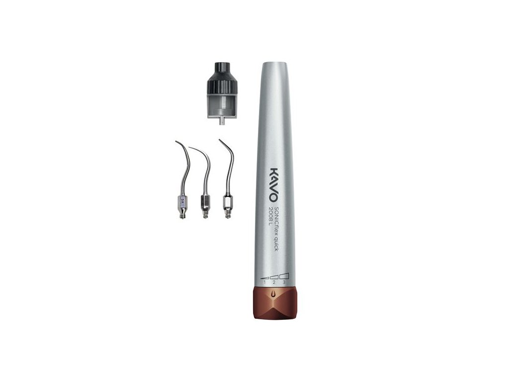 Pneumatický odstraňovač zubního kamene se třemi stupni regulace výkonu. Všestranný scaler KaVo SONICflex s příslušenstvím v podobě více než 50 hrotů, které se rychle a snadno vyměňují, se přizpůsobí vašim požadavkům v široké škále aplikací - endodoncie, hygiena, preparace i minimálně invazivní stomatologie.
