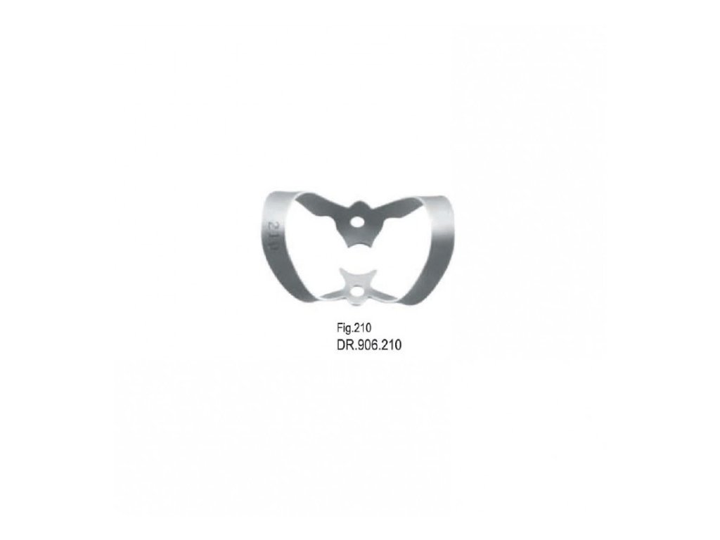 Spona pro kofferdam fig. 210 – anteriory Bezpečná fixace, maximální přehled, pohodlná práce.