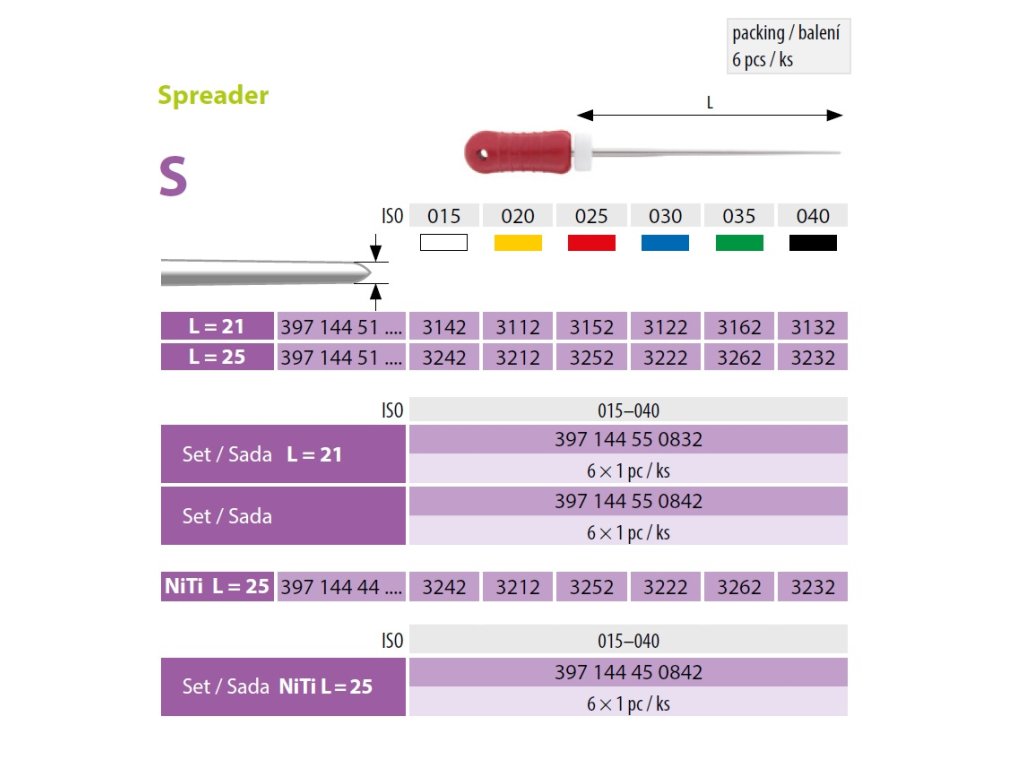 Spreader 025 L25 je speciálně navržený nástroj pro laterální kondenzaci gutaperchy a dalších výplňových materiálů v kořenových kanálcích. Tento nástroj je nezbytný pro dosažení optimální kondenzace a zajištění kvalitní obturace kanálků během endodontických procedur.