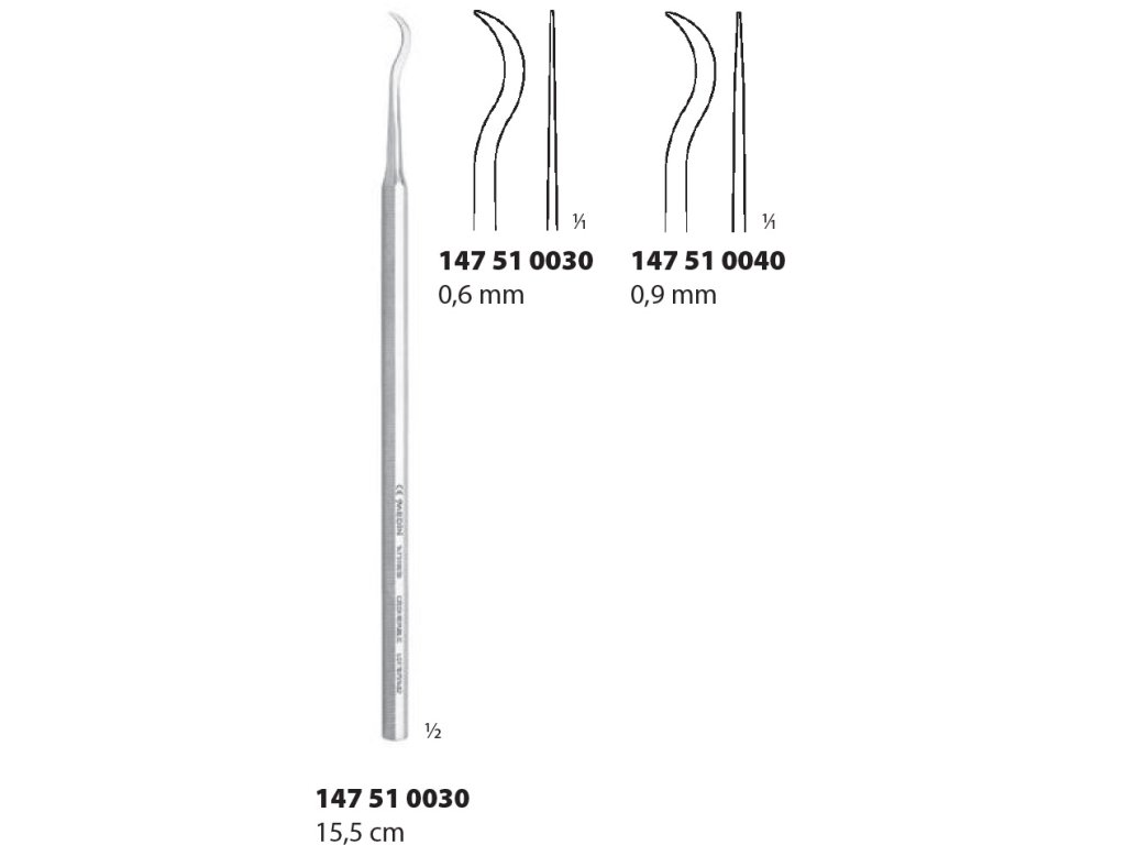Medin Srpek na zubní kámen (0,9 mm, 15,5 cm, 1 ks) – precizní srpek pro odstraňování zubního kamene. Nerezová ocel pro stomatologii.