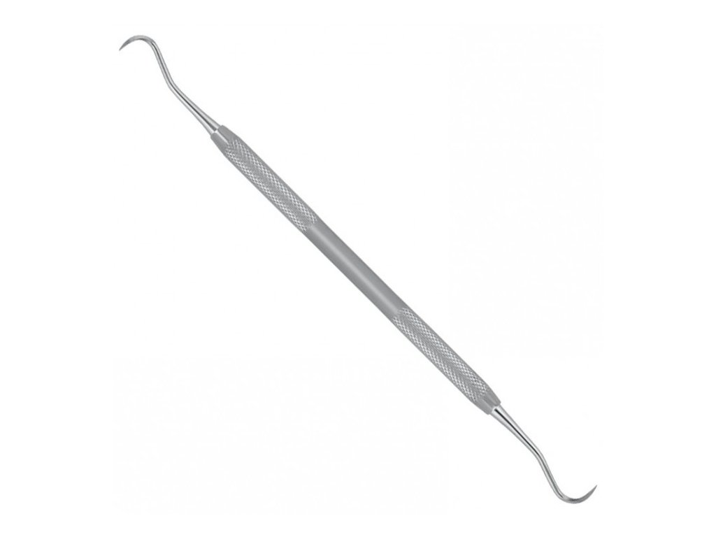 Tento nástroj je vyroben z chirurgické nerezové oceli, která zajišťuje vysokou odolnost vůči opotřebení a korozi. Škrabák je vhodný pro běžnou profesionální dentální hygienu, a to zejména v zadních oblastech, kde je přístup často omezený.
