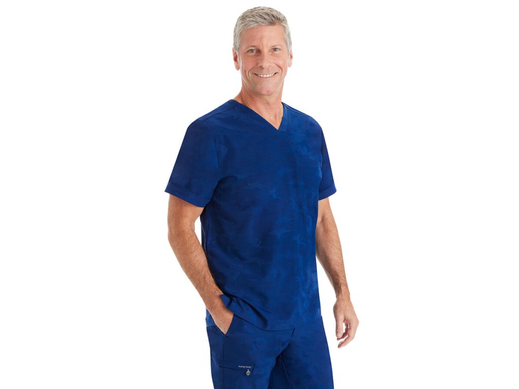 Zažijte trendy vzhled a komfort s touto pánskou halenkou s nenápadným army potiskem. Moderní design nejen že zaujme vaše pacienty a kolegy, ale také poskytne pohodlí během celého pracovního dne. Halena je vyrobena z kvalitních materiálů, které vám zajistí svěží pocit i v parných letních dnech. Oceníte praktickou náprsní kapsu, rozparky pro lepší pohyb a vyztužené manžety na rukávech, které dodávají outfitu šmrnc.