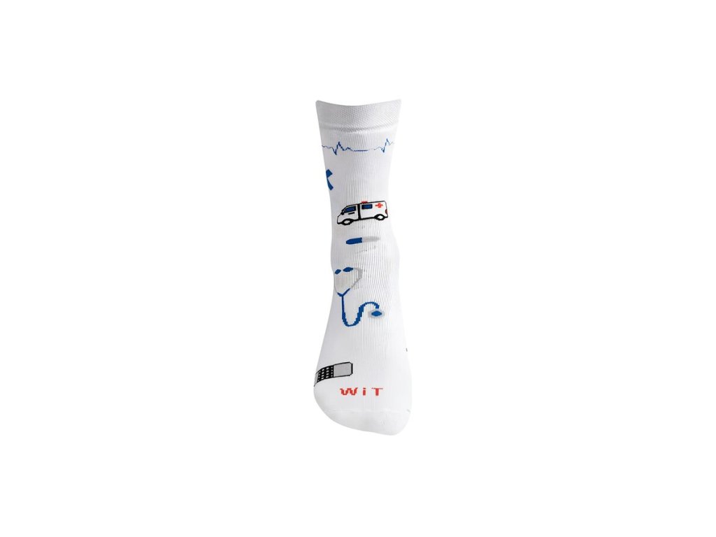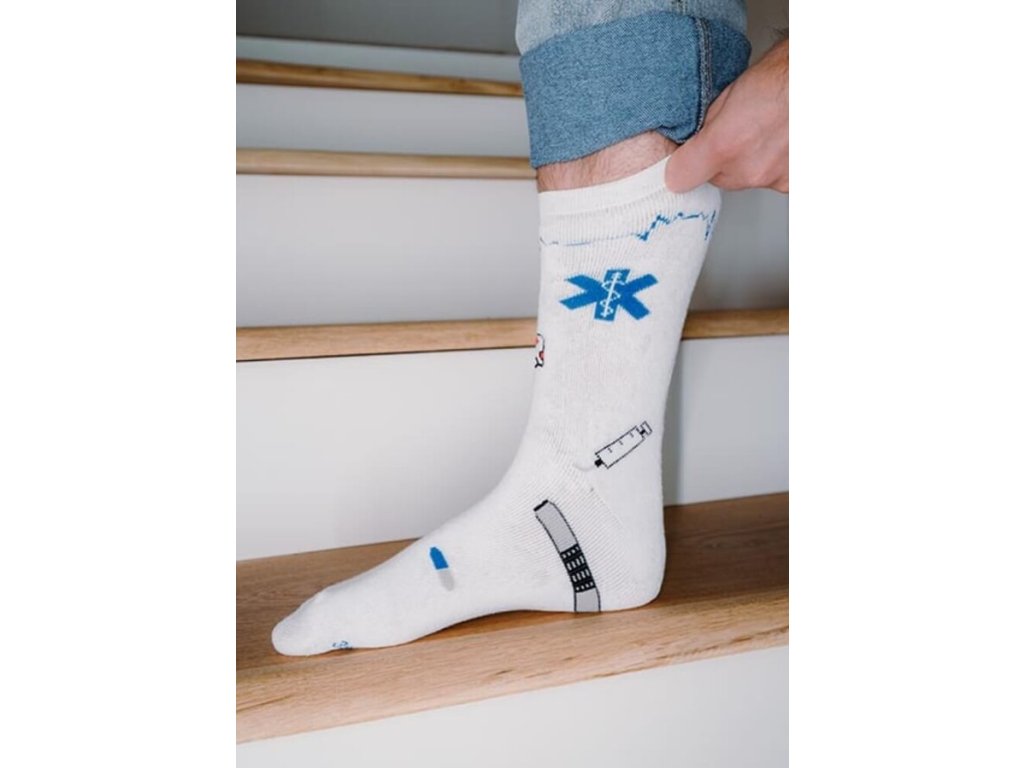 Dodání 4-5 pracovních dnů. Bílé termo ponožky s originálním zdravotnickým vzorem. Zdravotnické ponožky mají POHODLNÝ neškrtící LEM a kvalitní materiál. Vyrobeno v ČR rodinnou firmou. Ideální pro zdravotníky.