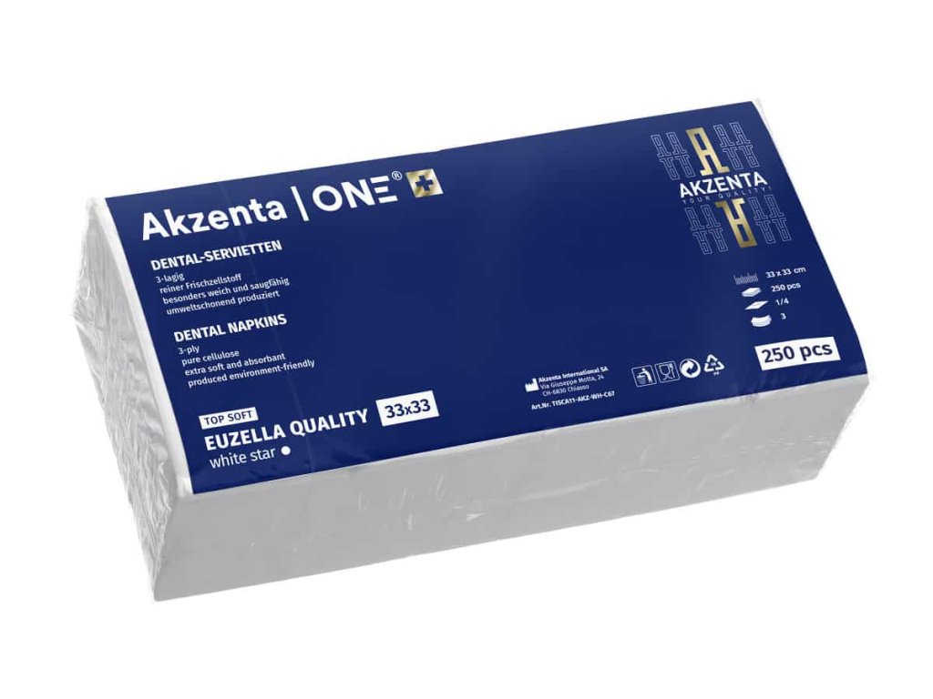AKZENTA Měkké a vysoce savé. Vyrobeno z prémiové celulózy. Hygienické balení. Dostupné velikosti: 33 x 33 cm a 40 x 40 cm Barva: bílá