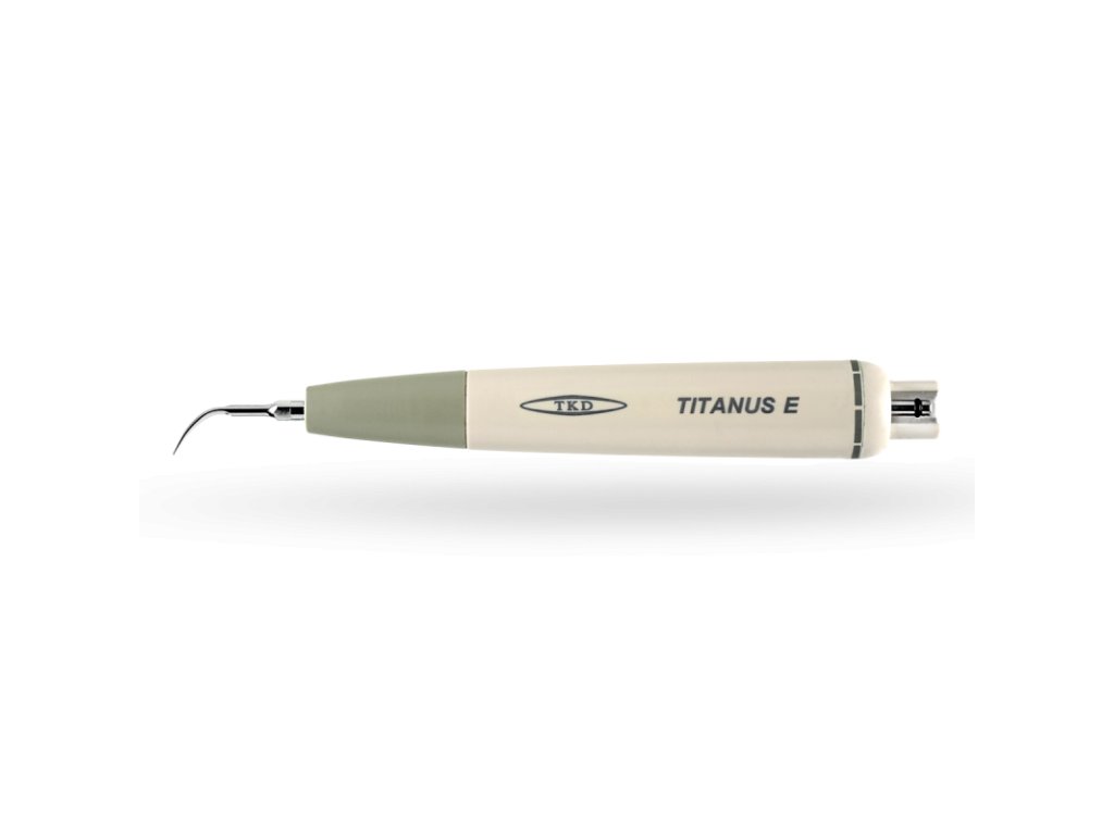 TITANUS E je moderní ultrazvukový piezoelektrický scaler se závitem kompatibilním s EMS a připojením odpovídajícím systému EMS Piezon. Tento vylepšený model nabízí vyšší výkon, plnou kompatibilitu s celou řadou vložek EMS a díky titanovému měniči zajišťuje spolehlivost a maximální účinnost. Generované mechanické vibrace jsou zcela lineární a podélné, což umožňuje šetrné a precizní ošetření.