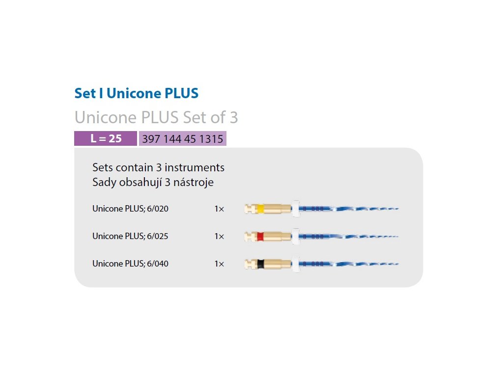 Set Unicone I 1× Set Gutta Percha Points 6/015–040 1× Set Absorbent Paper Points 6/015–040 1× Produktová brožura Unicone 1× Návod k použití 1×.