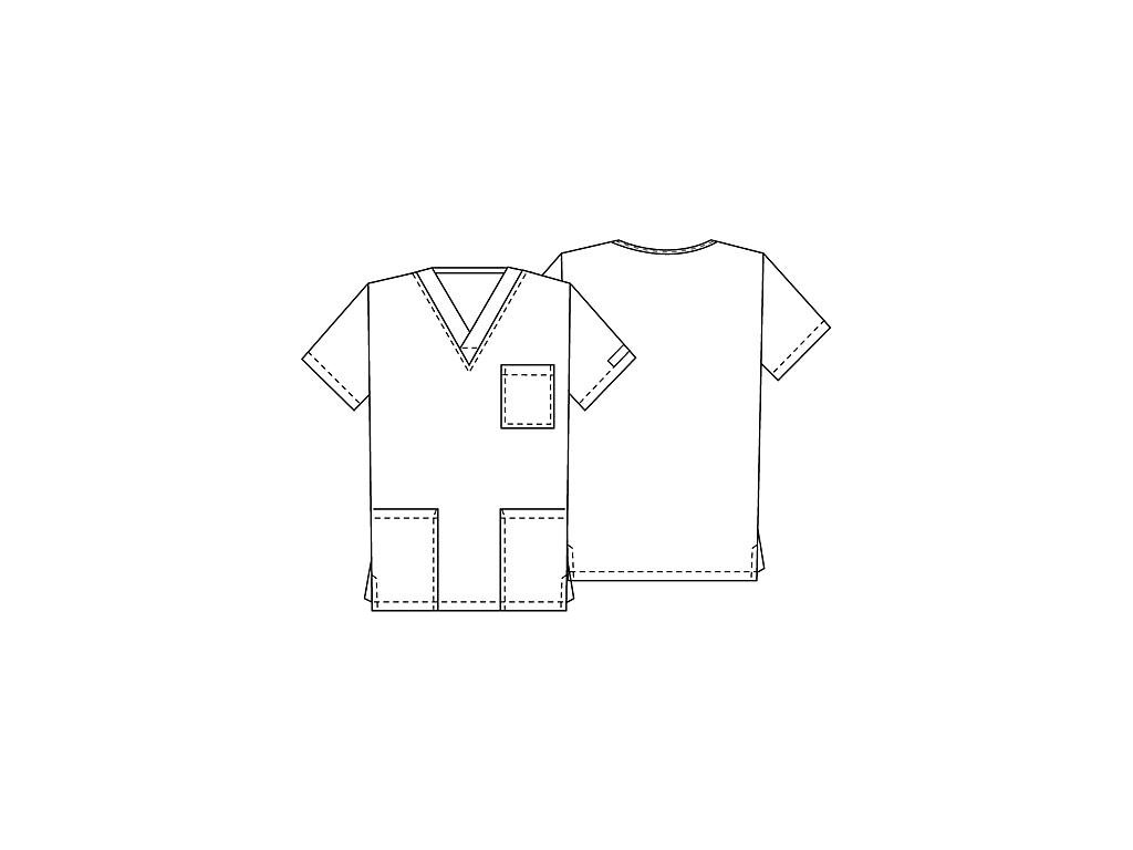 Dodání 4-5 pracovních dnů. Unisexová halena s V výstřihem a krátkým rukávem má jednu náprsní kapsu a dvě boční prošívané kapsy.