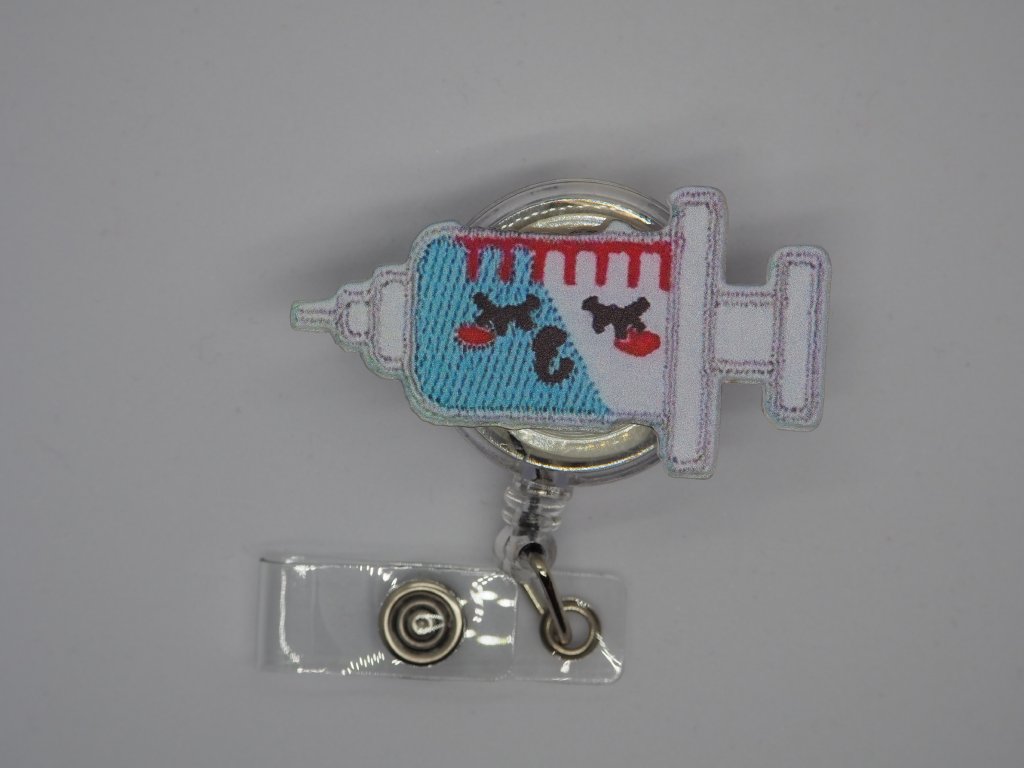 Originální ID visačka ve tvaru injekční stříkačky dodá vašemu pracovnímu outfitu styl i osobitost. Perfektní pro zdravotníky, lékaře a sestřičky, kteří chtějí vnést trochu radosti do svého pracovního dne!