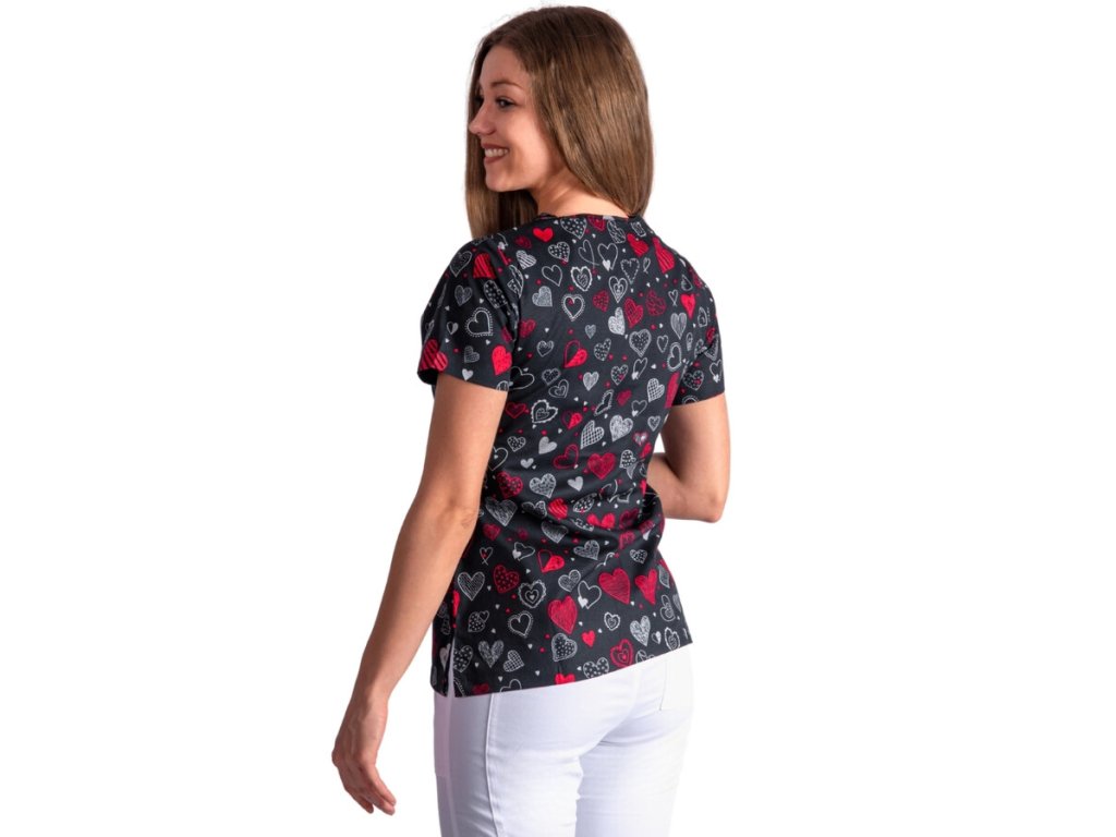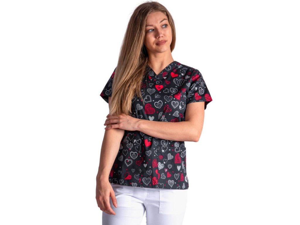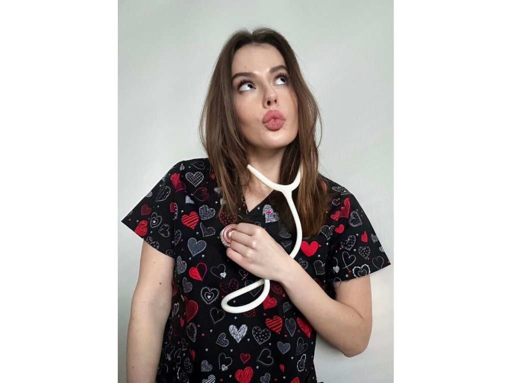 - Stylový design: Halena s veselým potiskem srdíček je skvělá pro prostředí, kde se pracuje s dětmi nebo seniorními pacienty.