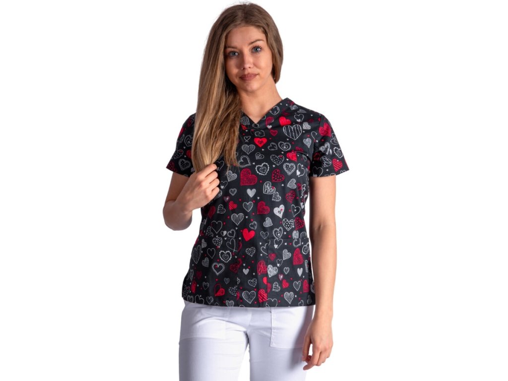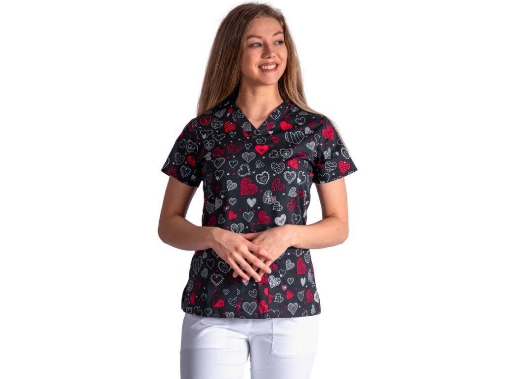 Dámská zdravotnická halena s potiskem srdíček