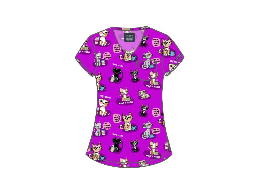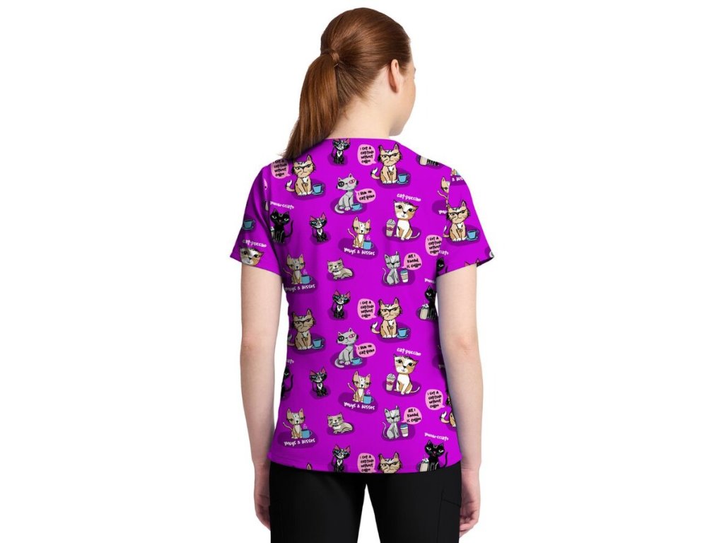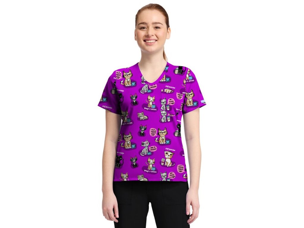 Zajistěte příjemnější atmosféru v ordinaci s veselým potiskem KOČIČKY. Zdravotnická halena V OBLÍBENÉM STŘIHU s příměsí ELASTANU je pro vás připravena v LIMITOVANÉ EDICI.