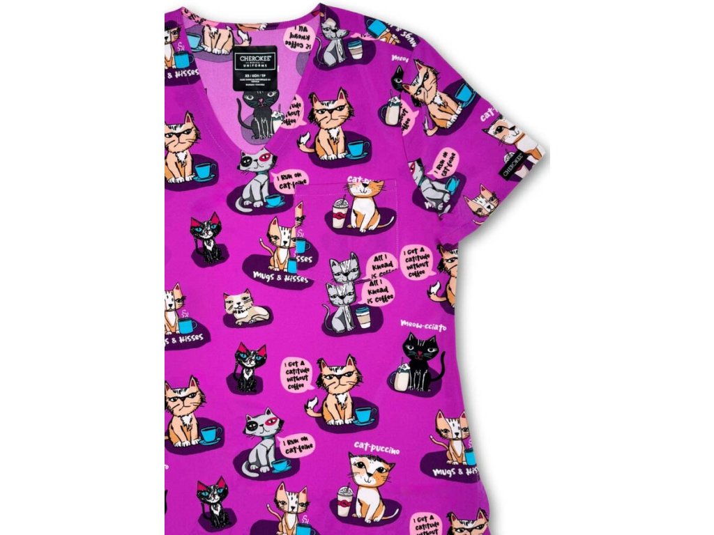 Zdravotnická halena Cherokee KOČIČKY Pohodlná, hravá, ideální pro milovníky zvířat